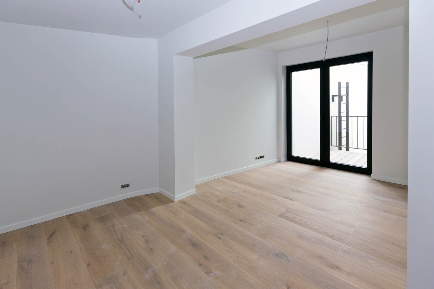 Over het hele appartement ligt een prachtig eiken parket van 24cm breed, uitgezonderd in de badkamers en toilet.